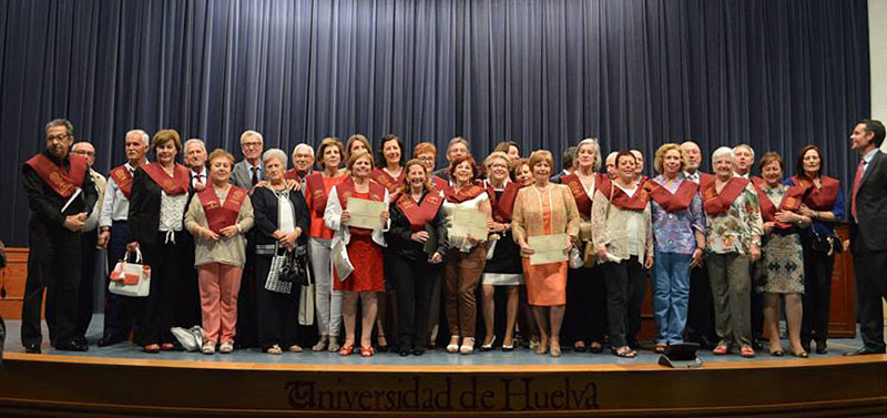 Un total de 96 fueron los estudiantes que se graduaron en la tarde del pasado viernes 3 de junio en el Aula de la Experiencia de la Universidad de Huelva. Estudiantes de las sedes de Huelva capital, Lepe, La Puebla de Guzmán, Moguer, Isla Cristina y La Palma del Condado se reunieron en un acto emotivo que estuvo presidido por el Rector de la Universidad de Huelva, Francisco Ruiz Muñoz.