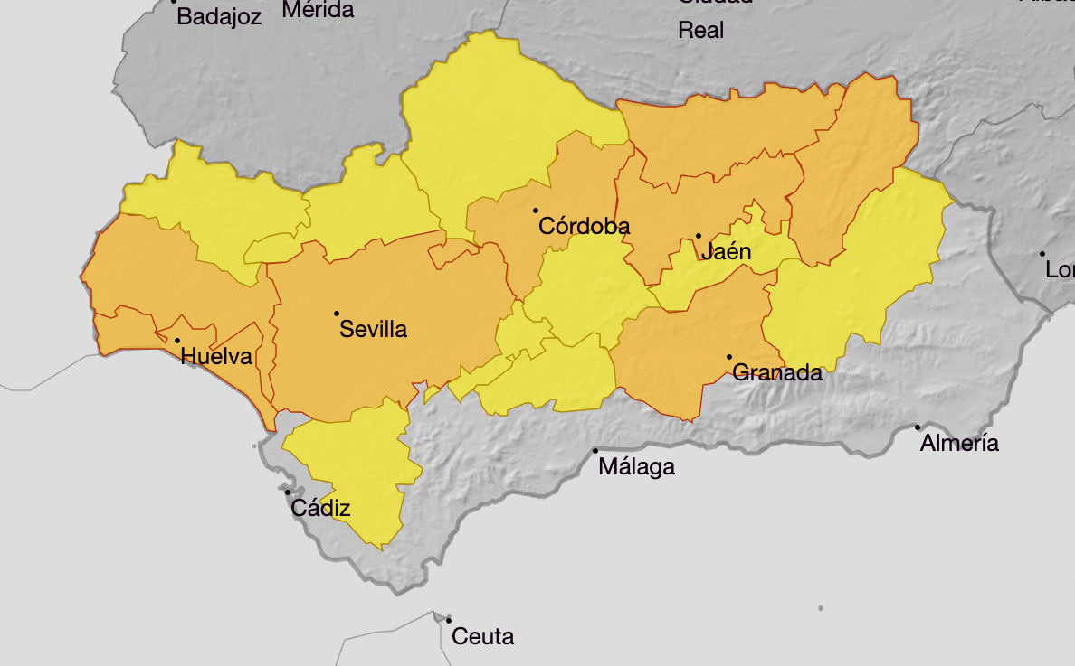 La Aemet ha comunicado un aviso naranja por altas temperaturas para el próximo domingo. La agencia estatal de meteorología califica con riego importante este aviso con temperaturas que pueden alcanzar los 40 grados en el Andévalo, Condado y Litoral de Huelva desde las 13:00 horas a las 20:59 horas del próximo domingo.