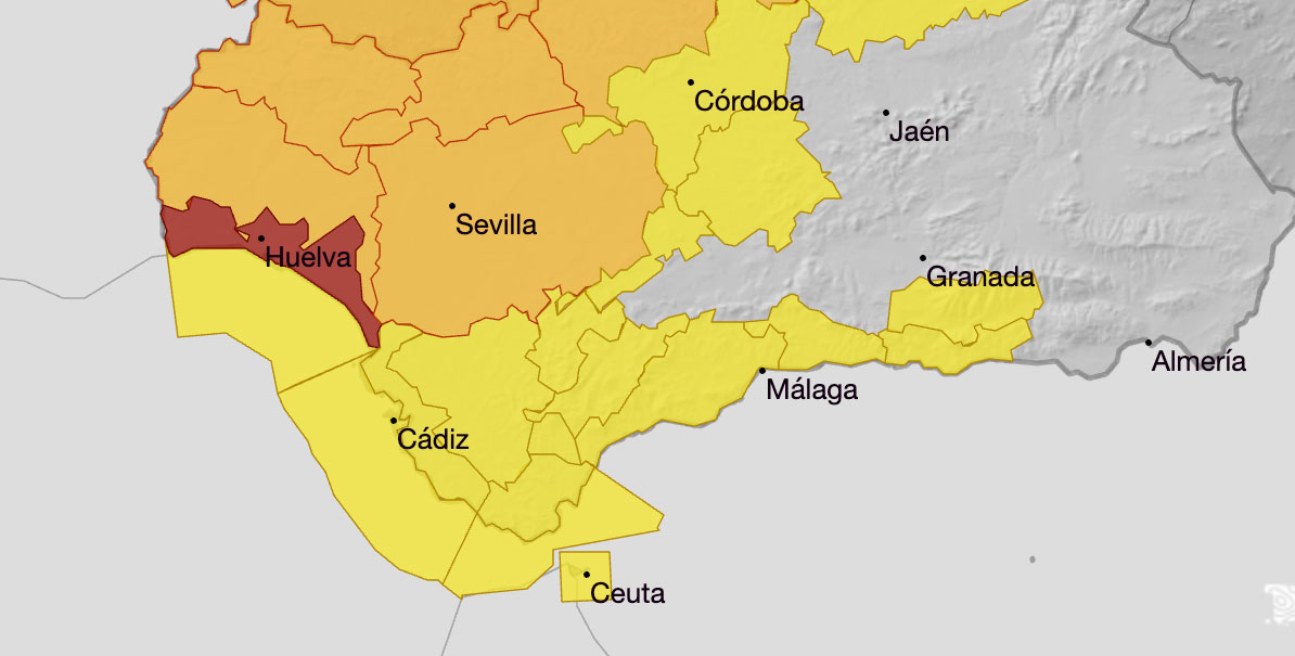 La Consejería de Sanidad, Presidencia y Emergencias ha enviado un mensaje Es-Alert a vecinos de la costa onubense, Andévalo y Condado