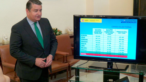 El delegado indicó que un total de 6.508.706 personas están llamadas a ejercer su derecho al voto en Andalucía el próximo 26 de junio, lo que representa un 17,82% del censo de electores en España y un aumento de 3.470 personas más que en diciembre de 2015, cuando el censo electoral se situó en 6.505.236 electores.