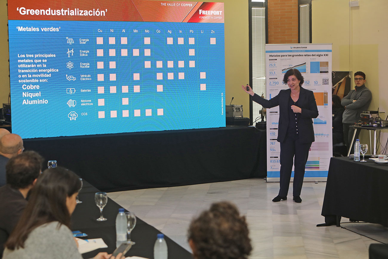 Macarena Gutiérrez subrayó que esta creciente demanda de cobre responde a los grandes retos del siglo XXI, como la transición energética, la movilidad sostenible y la digitalización, y destacó la posición estratégica de Atlantic Copper en este contexto. «Las energías renovables, el vehículo eléctrico o la inteligencia artificial exigen un acceso seguro y sostenible a materias primas fundamentales y, en este sentido, Atlantic Copper jugará un papel clave como empresa multimetal en Europa», afirmó.