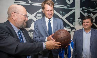 El embajador británico en España, Hugh Elliott, visita el estadio y el museo del equipo onubense, conociendo los detalles de una historia en la que destaca la Copa Seamen’s El…
