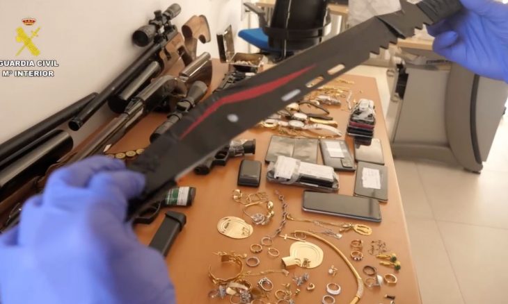 En los registros se ha intervenido una cantidad aproximada de 20.000 euros en efectivo, joyas y otros efectos sustraídos, dos turismos, una autocaravana y diverso material utilizado para cometer las estafas, destacando la incautación de un arma modificada para efectuar disparos en modo ráfaga, siete armas de aire comprimido, una carabina y una elevada cantidad de munición.