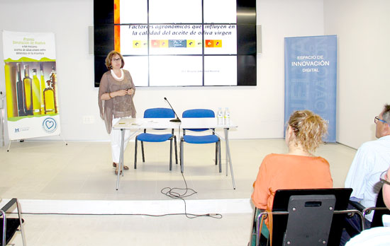 Brígida Jiménez ha profundizado en la necesidad de filtración del aceite por parte de las almazaras para mejorar la calidad y ha tratado los factores agronómicos que influyen en la producción, como el seguimiento de maduración o la problemática de la mosca del olivo. Por su parte, Fernando Martínez, ha tratado los diferentes aspectos tecnológicos que influyen en la calidad del aceite de oliva virgen extra.