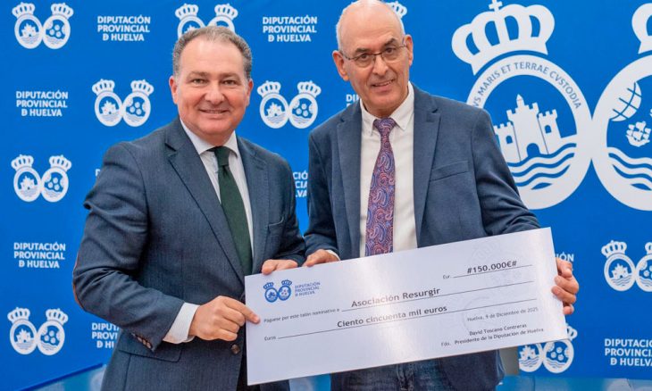 El presidente de la Diputación de Huelva, David Toscano, y el presidente de la Asociación Resurgir, Antonio Gómez, han firmado hoy un convenio de colaboración con el que la institución provincial subvencionará la atención y asistencia a las familias en situación de necesidad de los municipios de la provincia de Huelva menores de veinte mil habitantes. A través de este acuerdo, Diputación aportará 150.000 euros para que personas y familias de la provincia puedan acceder a productos básicos de alimentación, higiene personal y del hogar en el economato social de Resurgir. Todo ello prescrito y acompañado por los Servicios Sociales Comunitarios, que son quienes identifican las necesidades reales y acompañan a cada familia con profesionalidad y humanidad.