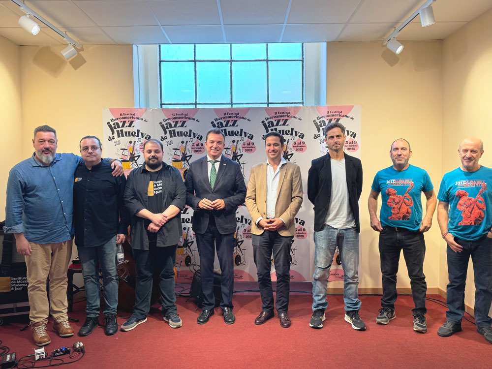 El concejal de Cultura y Patrimonio Arqueológico del Ayuntamiento de Huelva, Nacho Molina, junto al presidente de la Fundación Caja Rural, Emilio Ponce, y un nutrido grupo de artistas, presentó oficialmente el pasado martes en rueda de prensa la programación del 2º Festival de Jazz Iberoamericano de Huelva, “con el que la capital onubense se consolida como referente de este género musical en España tras el éxito de la primera edición tanto por el respaldo del público, como por la proyección de la ciudad gracias a la presencia de artistas de primer nivel”.