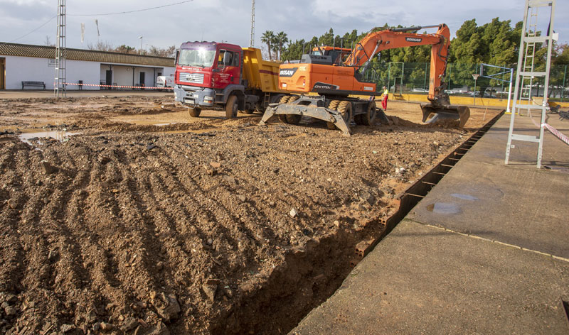 - Esta semana han dado comienzo unos trabajos destinados al levantamiento y nueva construcción de la pista de fútbol-sala, así como a la eliminación de las barreras arquitectónicas existentes