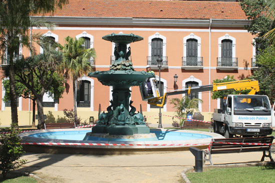 Así, hay que destacar que los operarios del Servicio de Alumbrado Público se encuentran en estos momentos realizando labores de mejora en la fuente situada en el patio de la Casa Colón, habiendo actuado ya en la Fuente de La Cinta, en la Plaza de las Monjas, en la Fuente de Bomberos y en la Fuente de la Rotonda Quinto Centenario.