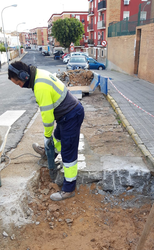 Por otro lado, destaca una actuación de urgencia para habilitar un rebaje de acerado destinado a facilitar la carga y descarga en el local de la ONG Bomberos sin Fronteras; así como la reparación de un paso de peatones en la calle Mazagón, junto al colegio Juan Luis Vives.