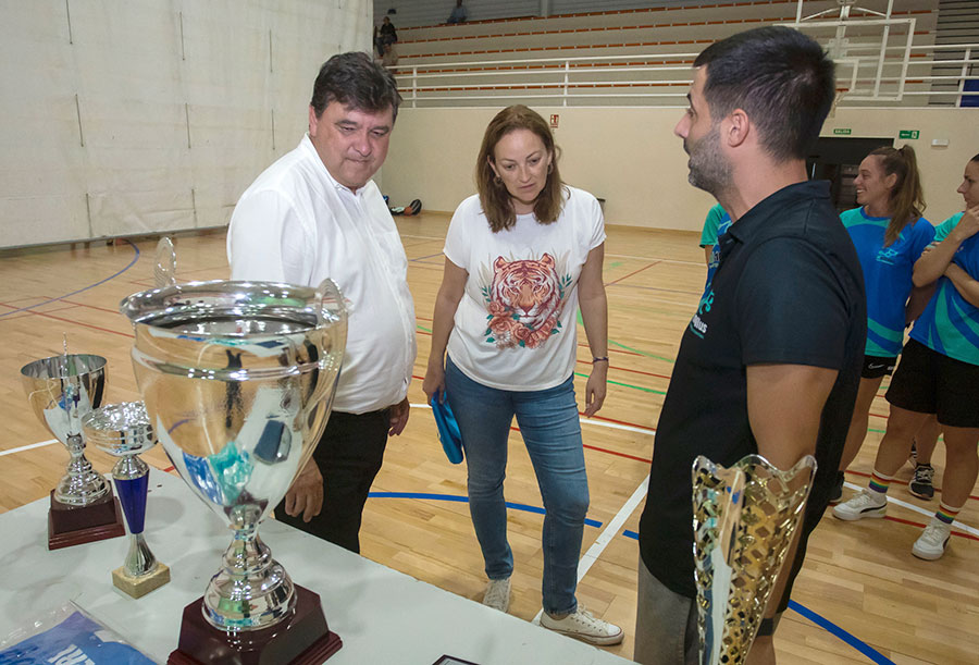El alcalde de Huelva, Gabriel Cruz, y la concejala de Participación Ciudadana y Deportes, María Teresa Flores, han acudido a un entrenamiento del equipo femenino de fútbol sala de este club en el Polideportivo municipal Diego Lobato, donde han conocido de primera mano cómo se preparan las campeonas andaluzas para afrontar una nueva temporada estrenándose en la Segunda RFEF.