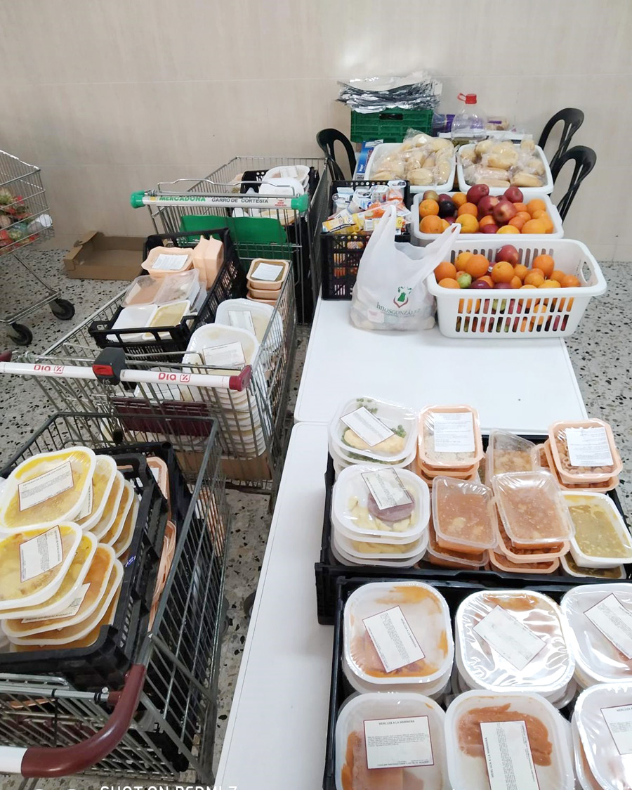 - Desde su sede, ubicada en la calle Bollullos del Condado, se entregan diariamente bolsas de comida, bocadillos calientes, piezas de fruta, leche y batidos