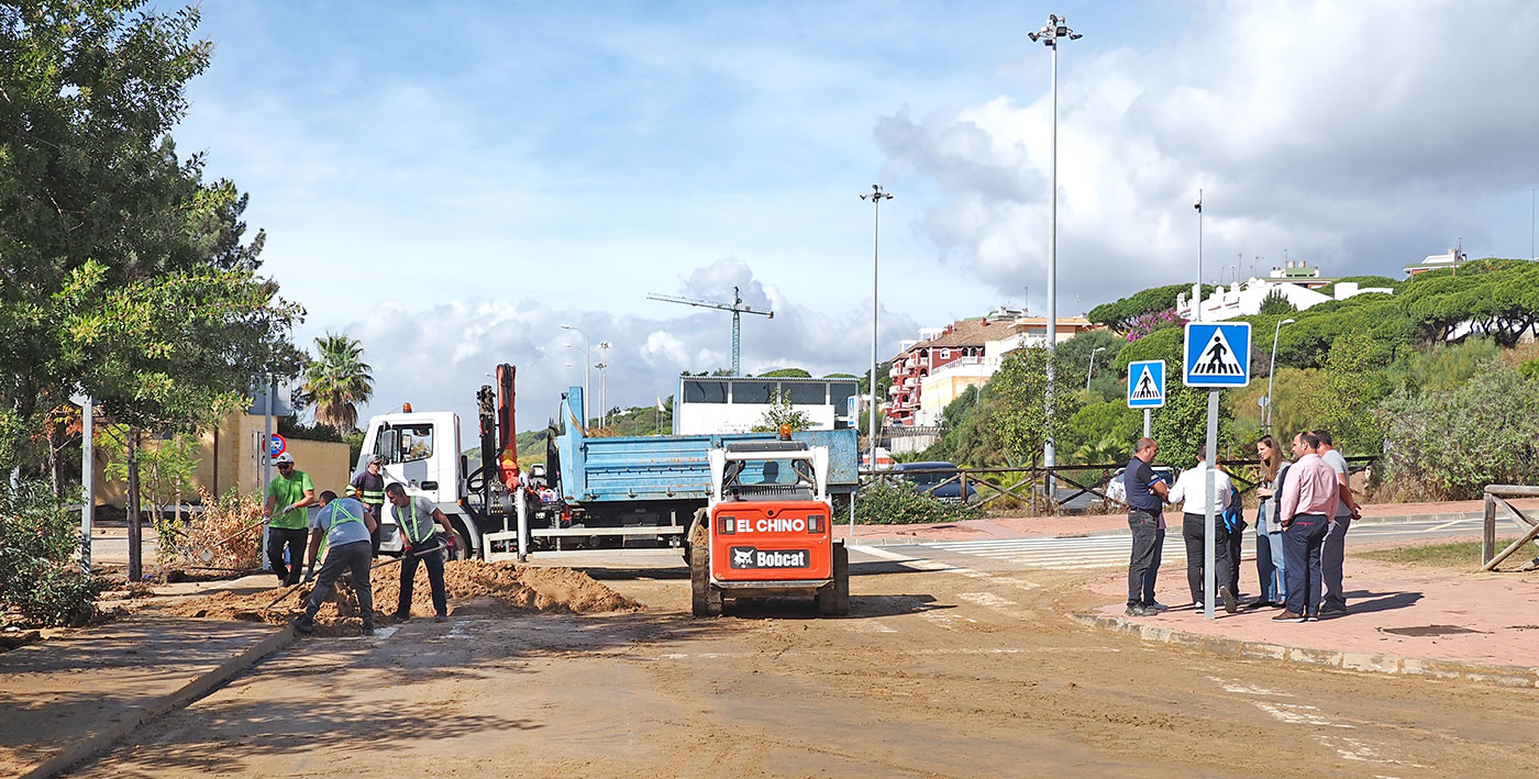 Desatacan la acumulación de barro y lodo en el cruce que da acceso al Puerto de Deportivo de la localidad costera, las anegaciones de la avenida Conquistadores, los corrimientos de tierra en las Casas Bonares y los accesos a la playa. En estos últimos casos se indica que  las pasarelas no han sufrido deterioros, pero si la arena sobre la que se cimentaban. Por ello, maquinaria pesada se encuentra reponiendo esa tierra que las corrientes de agua han arrastrado.