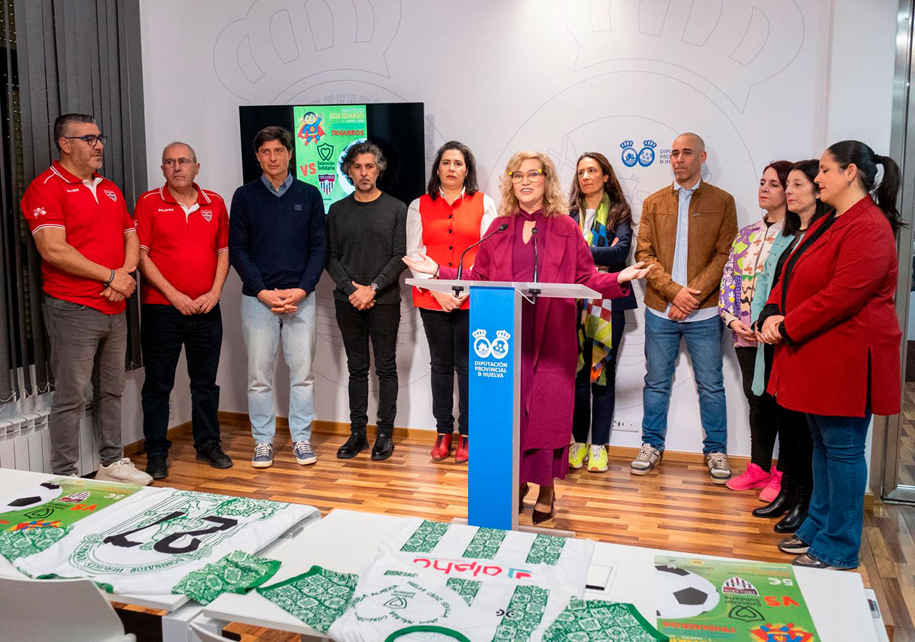 La Diputación de Huelva ha acogido la presentación del partido solidario a beneficio de la campaña ‘Nunca te rindas, Ángel’, un encuentro que se celebrará el próximo 7 de marzo en el polideportivo municipal El Morillo de Trigueros y que enfrentará al Trigueros Veteranos con una selección solidaria formada por artistas y colaboradores de la iniciativa.