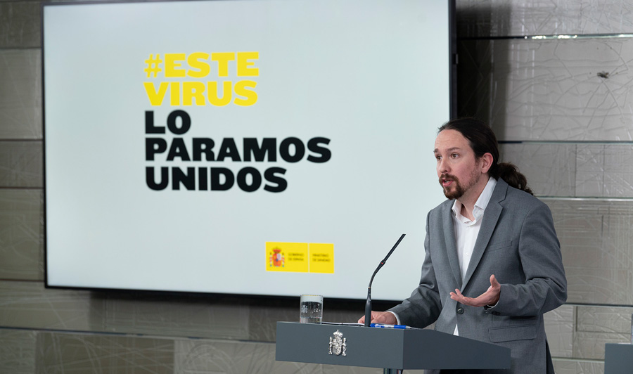 El vicepresidente segundo del Gobierno y ministro de Derechos Sociales y Agenda 2030, Pablo Iglesias, ha manifestado que las medidas de restricción de movimientos y de suspensión de las actividades laborales sólo serán viables si desde las instituciones del Estado se ofrece seguridad y protección a la ciudadanía.