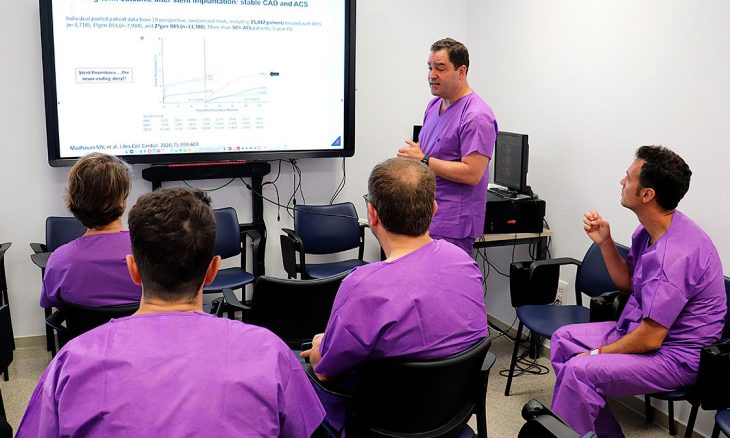 Se anuncia en este sentido que cerca de medio centenar de especialistas en Cardiaología, intervencionistas de diferentes hospitales de ámbito nacional serán formados a lo largo de este año, en el que están previstas un total de diez sesiones formativas en reducidos grupos, de las cuales se han realizado las dos primeras. Todo ello con la colaboración de la fundación onubense para la investigación en salud Fabis ubicada en este mismo centro hospitalario.