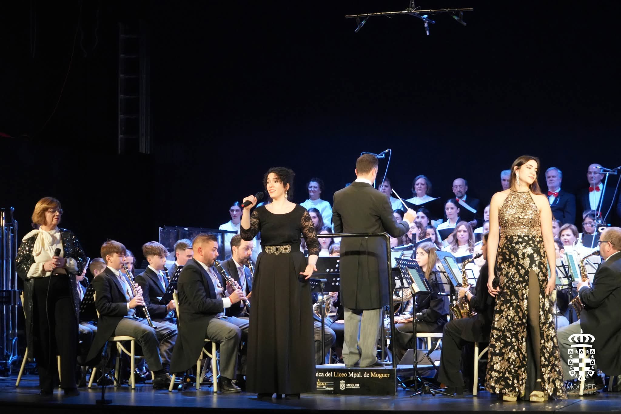 La Banda Sinfónica del Liceo de Moguer fue la protagonista del evento que contó con la participación de la Coral Polifónica y la Escolanía de alumnos de Teatro Musical del Liceo, en un espectáculo que ha unido música sinfónica, voces y emociones, y que ha tenido un marcado carácter solidario destinándose su recaudación a distintas Asociaciones.