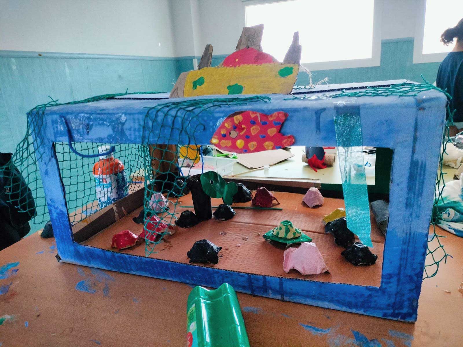 También se ha colaborado con el Ceip Las Gaviotas, donde el alumnado de 4º de primaria realizó un taller donde aprendieron las diferentes artes de pesca utilizadas en la zona, la biodiversidad pesquera, las tallas mínimas de las especies y la importancia de mantener limpios los fondos marinos. Finalizaron con un taller de manualidades donde se construyeron con residuos no orgánicos, sus propios acuarios que se llevaron a su centro. En este sentido fue una jornada de aprendizaje, de compartir, de descubrimientos y de creatividad.