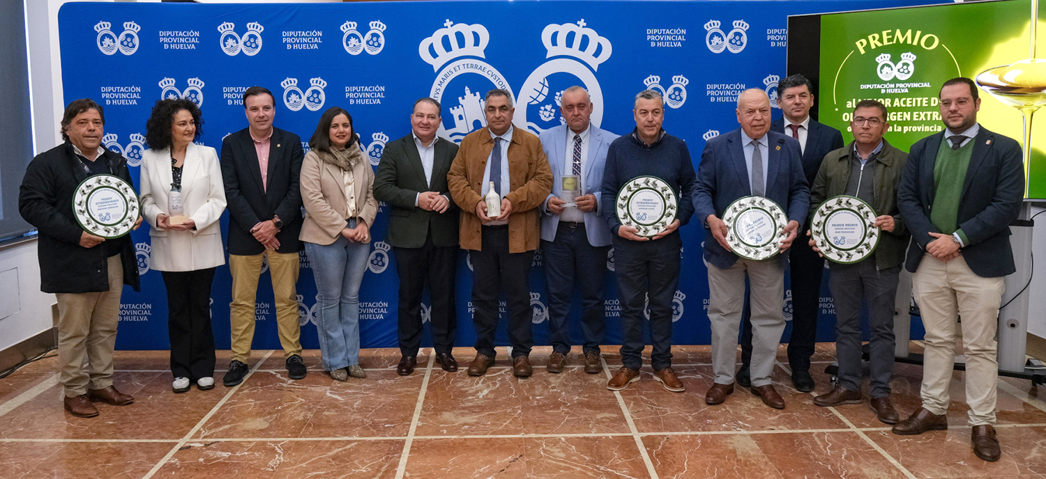 El Salón de Plenos de la Diputación de Huelva ha acogido recientemente el acto de entrega de los galardones correspondientes a la undécima edición del Premio Diputación de Huelva al Mejor Aceite de Oliva Virgen Extra de la provincia en la cosecha 2024/2025, organizado desde el Servicio de Agricultura, Ganadería, Pesca y Marca Huelva de la institución provincial, así como una distinción especial al Mejor Packaging.