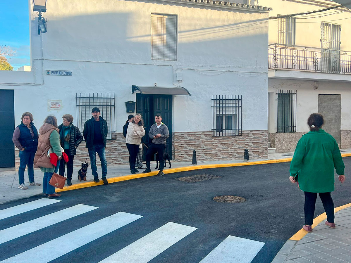El alcalde de Lepe, Adolfo Verano, acompañado por los tenientes de alcalde de Presidencia, Ana Delgado y Urbanismo, Javier Bueno, así como otros miembros del equipo gestos, visitaron ayer la calle Palma del Condado de Lepe, tras la realización de las obras de mejora en las redes de abastecimiento y saneamiento.