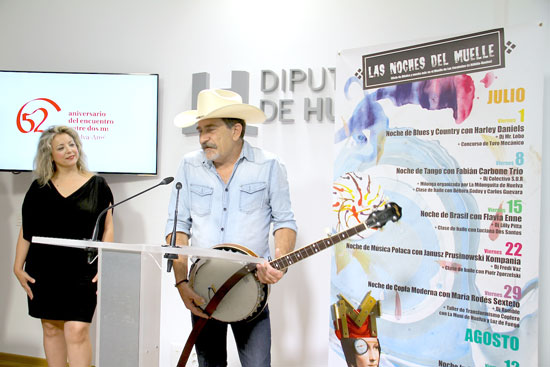 El ciclo ‘Las noches del Muelle (Música y mucho más en el Muelle de las Carabelas)’ comienza mañana su programación estival a ritmos de blues y country. El grupo Harley Daniels será el encargado de inaugurar el escenario rabideño con una actuación que ha sido presentada por la diputada de Cultura, Lourdes Garrido y Javier Valenzuela, instrumentista miembro de la banda, que ha ofrecido un adelanto de banjo y de dobro.
