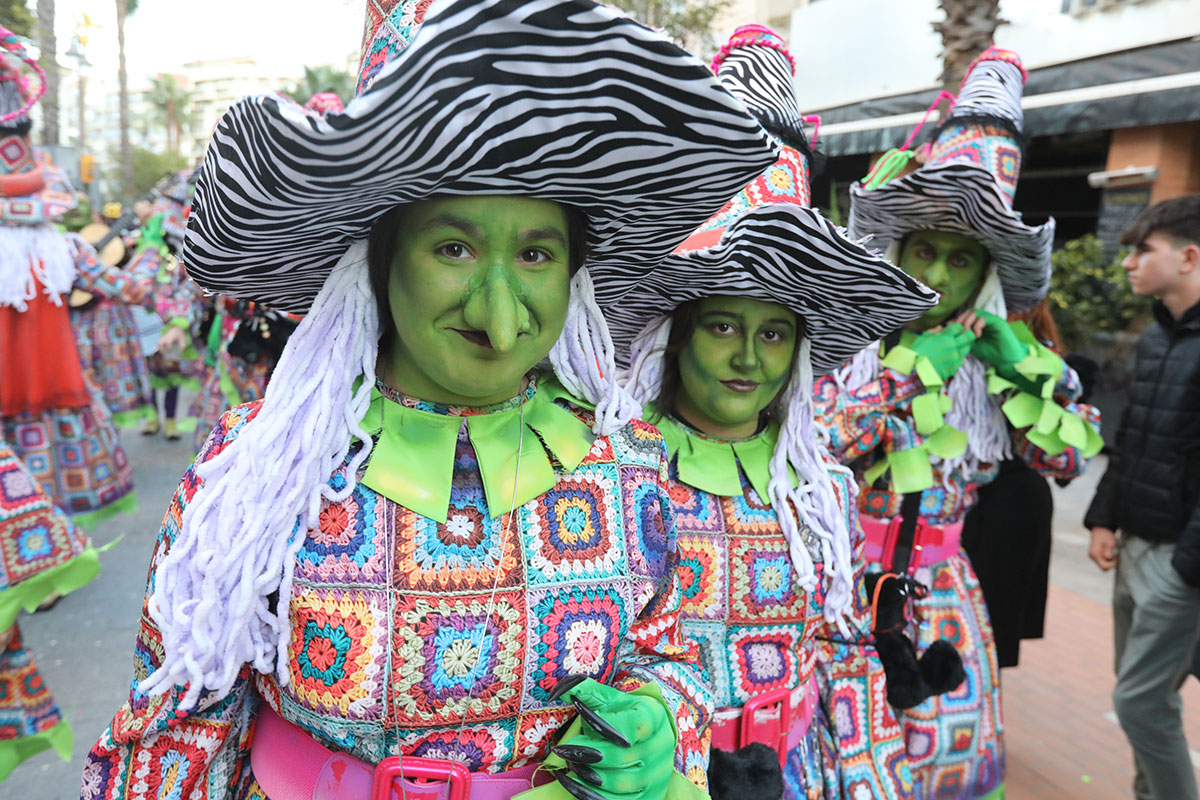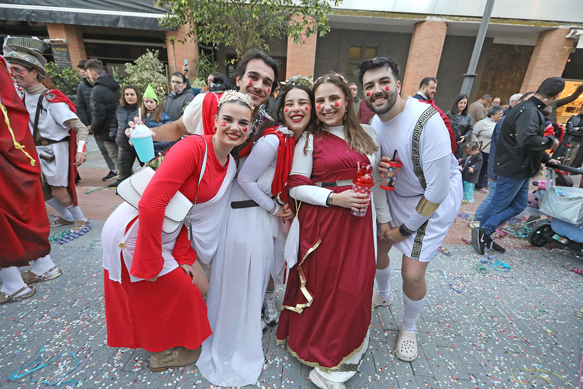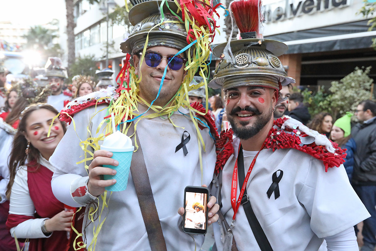 Mientras que el 13 de febrero diferentes agrupaciones cantaban en algunos puntos de la ciudad y se celebraba el pregón en el Gran Teatro, el sábado 14 salía a la calle la esperada cabalgata saliendo desde Isla Chica y haciendo un recorrido planificado hasta llegar a la Plaza de las Monjas, con cinco carrozas acompañadas de grupos de animación junto con el ambiente festivo del público asistente, que con sus disfraces llenos de fantasía y sus cantes mostraban todo el calor del carnaval.