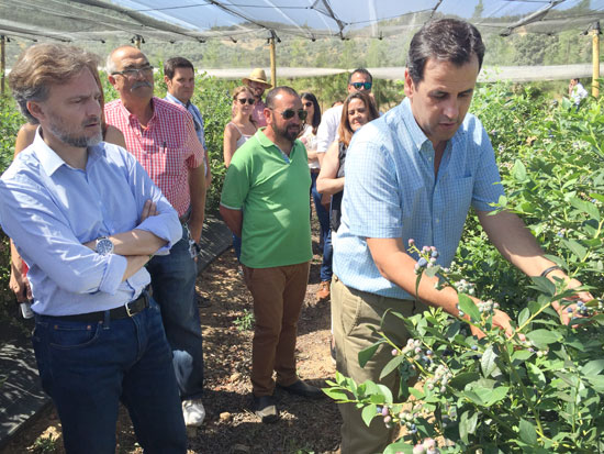 José Fiscal, que estuvo acompañado por el alcalde de Aroche, José Antonio Muñiz, ha realizado estas declaraciones en la finca La Belleza, de propiedad municipal, y que explota Antlantic Blue, una de las más importantes productoras de frutos rojos en Andalucía.