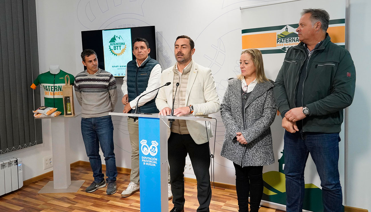 El alcalde de Paterna del Campo, Juan Salvador Domínguez, junto con el diputado de Deportes, Juan Daniel Romero; y el CEO de Extremeñamente, empresa organizadora de la prueba, Manuel Llano, presentaron en la jornada de ayer en la Diputación de Huelva la XXIV Ruta BTT Villa de Paterna. La prueba, que se celebrará este domingo 30 de noviembre, es una de las más esperadas del calendario onubense para los amantes de la bicicleta todoterreno.