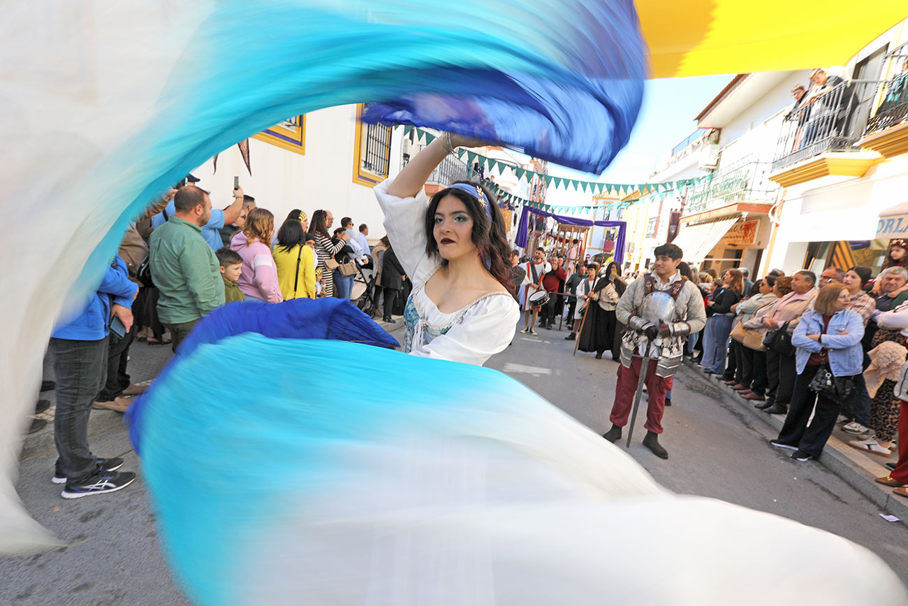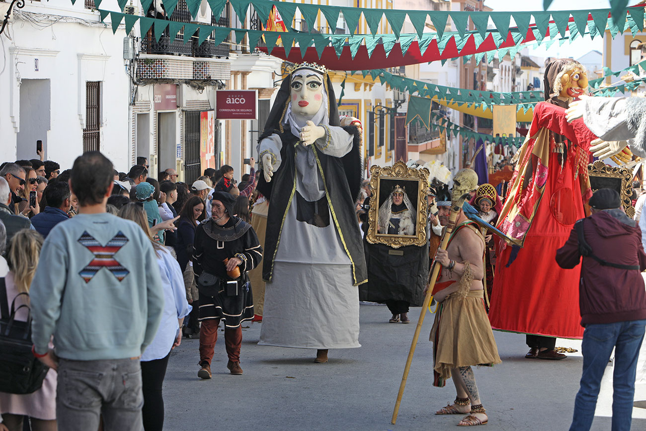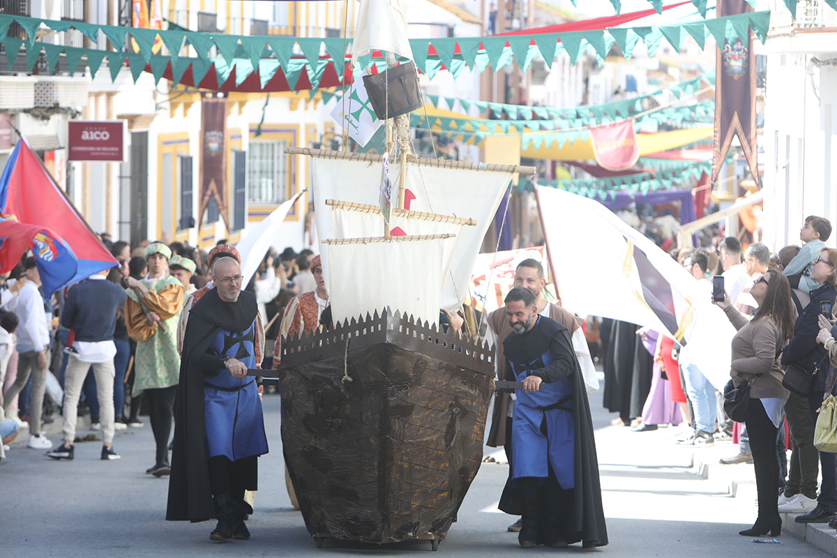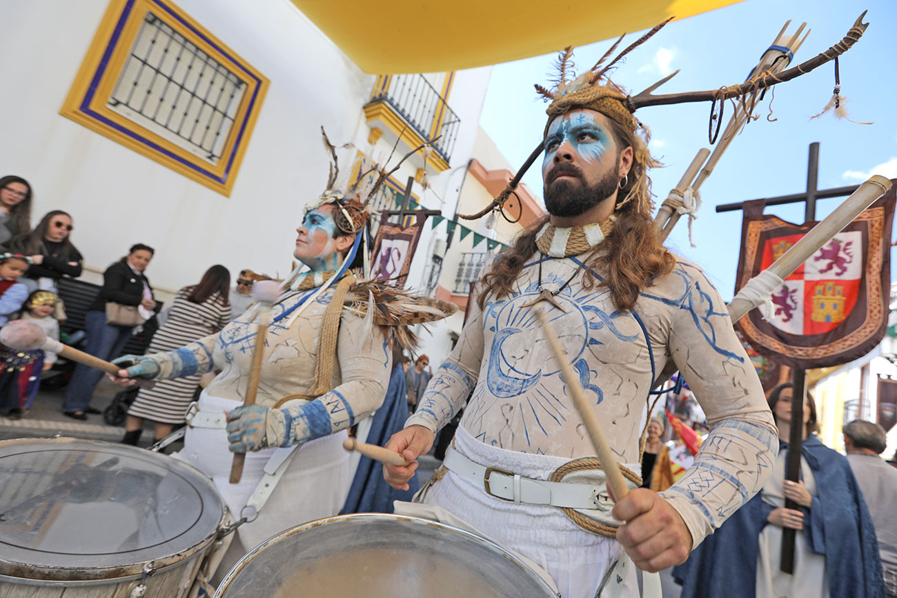 Uno de los grandes atractivos de la Feria Medieval del Descubrimiento de Palos de la Frontera es su desfile inaugural. En la mañana de hoy arrancaba la feria con cetreros, presos, brujas, reinas, guerreros, mendigos, monjes y por supuesto, el almirante Cristóbal Colón y los hermanos Pinzón y sus marineros que ha realizado una entrada triunfal a la Villa de Palos. Más de 400 personajes totalmente caracterizados inundarán de música y color las principales calles de la localidad.