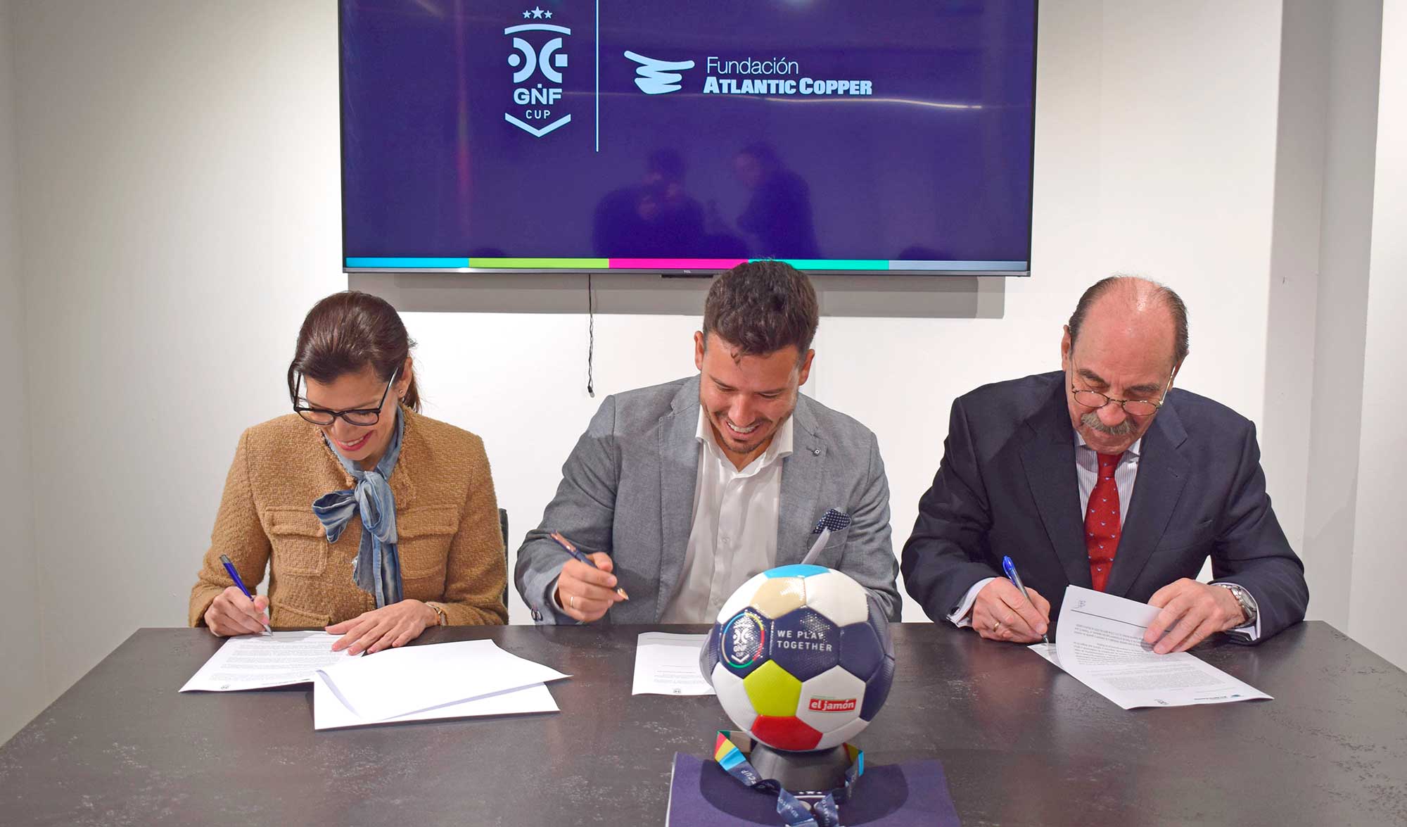 En virtud de este convenio, firmado por el presidente de la Fundación Atlantic Copper, Heliodoro Mariscal Álvaro; la directora de la Fundación, Ángeles Sánchez Cueca, y el director de Gañafote Cup, Joaquín Rasco, la entidad onubense colaborará con el patrocinio de los trofeos del torneo, reafirmando de este modo su compromiso con el deporte base.