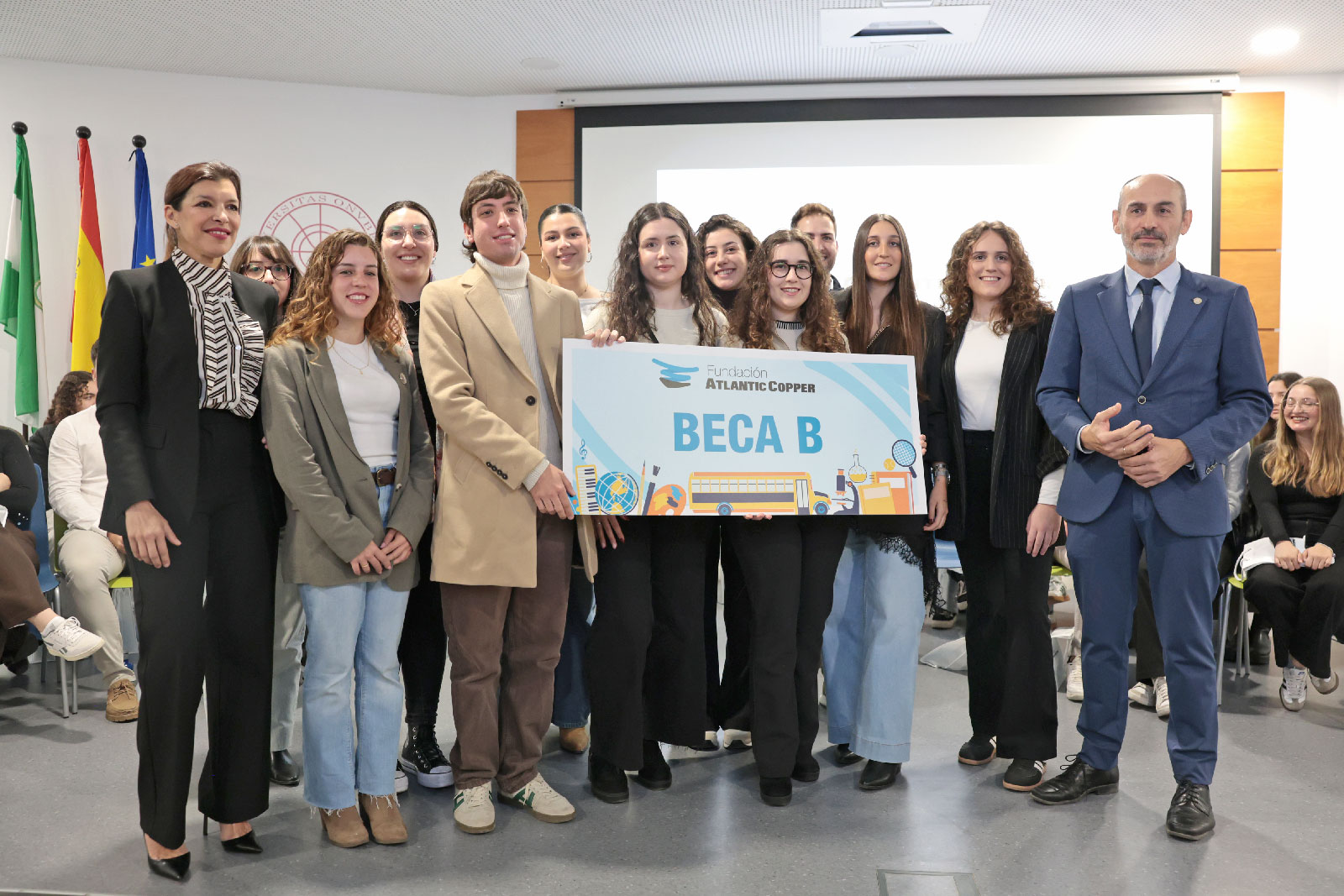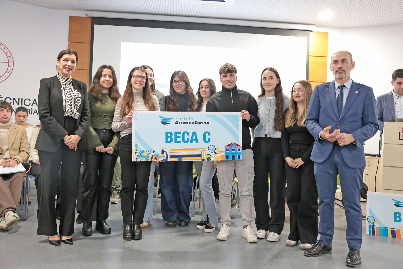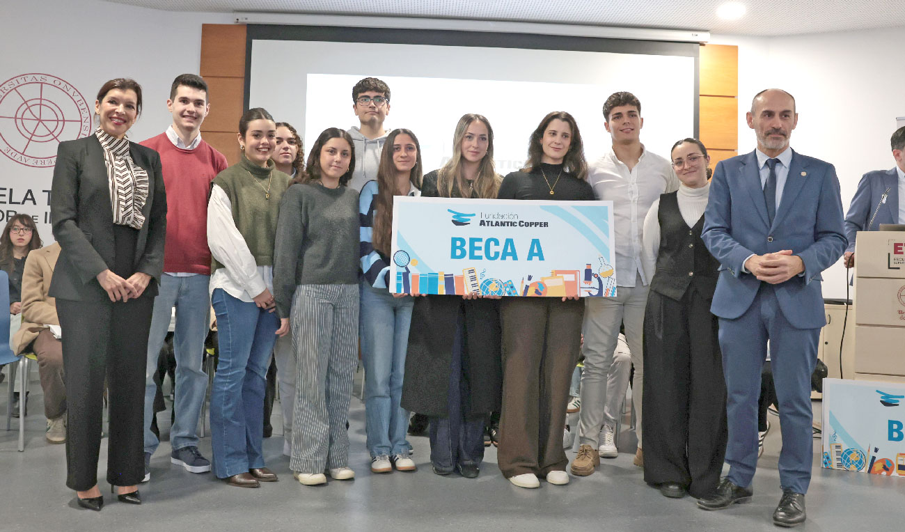 La Fundación Atlantic Copper y la Universidad de Huelva han celebrado hoy, en el Salón de Grados de la Escuela Técnica Superior de Ingeniería (Etsi), el acto de entrega de 31 becas destinadas a respaldar al estudiantado durante el curso 2025/2026. Estas ayudas permiten cubrir el importe de la matrícula cuando no esté subvencionada por el Ministerio de Educación, Formación Profesional y Deportes u otras vías, así como los gastos de material académico, desplazamiento y, en determinados casos, alojamiento, atendiendo a los niveles de renta familiar.