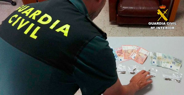 Al proceder a su identificación y registro superficial para conocer los motivos de tal comportamiento sospechoso, los agentes hallaron en una cajetilla de tabaco que portaba en un bolsillo, siete dosis de hachís preparadas para su venta, así como 203€ en monedas y billetes de diverso valor, procediendo a la detención del varón como presunto autor de un Delito contra la Salud Pública.