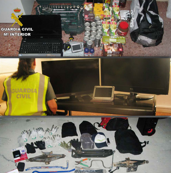 En total se han esclarecido un total de 20 robos con fuerza en las cosas, perpetrados en viviendas, establecimientos públicos (bares) y casas de campo en las localidades de Almonte, Bollullos Par del Condado y Rociana del Condado, no descartándose que este grupo haya operado en otras localidades de la provincia de Huelva y Sevilla y se han recuperado, dos televisores de pantalla plana, uno de 42 pulgadas y otro de 32 pulgadas, dos ordenadores portátiles, una tablet, un reloj de caballero, una radio CD, dos cajas de herramientas y gran cantidad de comida. También se ha intervenido un vehículo, el cual era utilizado para la comisión de los hechos delictivos y las herramientas utilizadas por los autores del hecho.