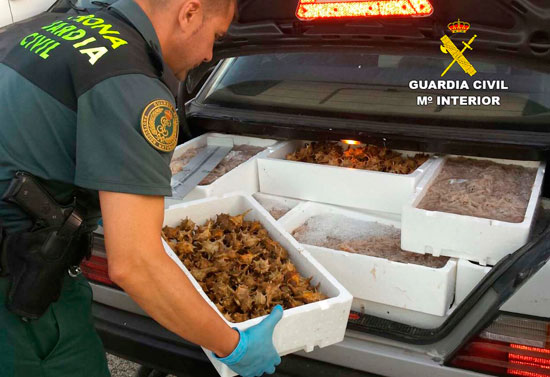 La Guardia Civil ha intervenido 144 kg. de alevines, (crías de peces recién nacidas) de diferentes especies, conocido popularmente como filigrana, 18 Kg. de merluza de talla inferior a la autorizada y 18 kg. de cañaillas cuya captura está prohibida por ser temporada de veda, proponiendo para sanción a la persona que lo transportaba como presunto autor de varias infracciones a la normativa de pesca marítima.