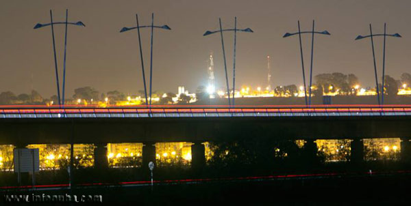 El puente sobre el río Odiel, de la carretera A-497, se construyó en 1992 y conecta Huelva capital con Aljaraque y Punta Umbría. Tiene una intensidad media de 46.421 vehículos diarios que se intensifica en el periodo estival. Su iluminación no es obligatoria y está restringida por atravesar una zona protegida, el Paraje Natural Marismas del Odiel, una importante reserva de aves, afectada por el Reglamento para la Protección de la Calidad del Cielo Nocturno.