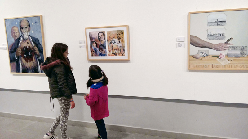 “Entre los artistas que participan, destacan Mario León y Vicente ‘Toti’, que auspiciaron esta muestra en Aracena y nos dejaron recientemente”, afirmó Brázquez en la inauguración oficial, por lo que la exposición se plantea también como un homenaje a estos dos grandes pintores. En la exposición se puede admirar también una escultura del artista aracenense Alberto Germán Franco, que ha hecho una colaboración especial. Sorprenden curiosidades como la serie de retratos de Zenobia y Juan Ramón realizada a base de sellos de los telegramas intercambiados entre el poeta y su esposa en 1916.