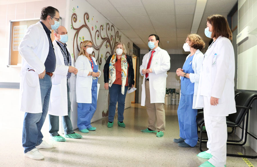 La delegada de Salud y Familias, Manuela Caro, ha visitado hoy el Hospital Universitario Juan Ramón Jiménez acompañada por el director gerente, José Luis Bonilla, donde ha querido poner en valor “la capacidad y el esfuerzo que están realizando los profesionales, dando el máximo de sí mismos, para atender a los pacientes con la máxima calidad asistencial a pesar del cansancio”, al tiempo que ha hecho un llamamiento a la responsabilidad individual de la ciudadanía para poder vencer a este virus.