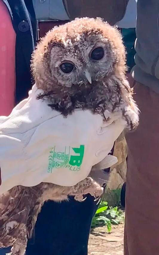 El pollo de cárabo fue detectado por particulares fuera del nido y trasladado por agentes de medio ambiente procedentes de Almonte a finales del mes de enero. Una vez comprobado que podía alimentarse por sí solo se unieron para que continuaran el proceso de sociabilización con su especie. Al principio se mantuvieron en un refugio a modo de nido y una vez avanzados en plumaje se trasladaron a instalaciones exteriores donde comenzaron a volar.