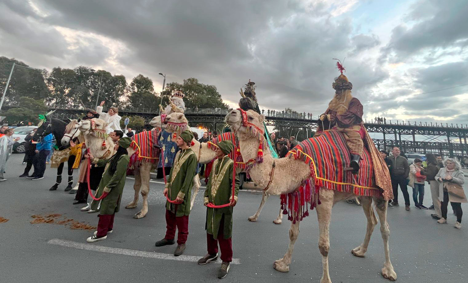 Sus Majestades Melchor, Gaspar y Baltasar, llegados desde Oriente montados en sus tres camellos, son recibidos con entusiasmo por miles de niñ@s onubenses que tras haber escrito sus cartas en estos días, se irán a dormir con la ilusión de saber que al día siguiente algo les espera. Mañana, y tras una dura noche de trabajo por parte de los reyes, podrán disfrutar jugando con los juguetes y obsequios recibidos, convirtiendo el día en una jornada llena de alegría, ilusión y sorpresas.