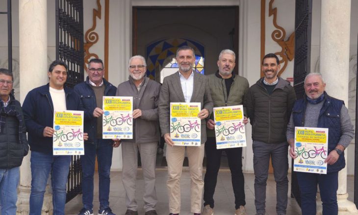 El alcalde de Moguer, Gustavo Cuéllar y los presidentes de los clubes ciclistas Platero y Los Domingueros, organizadores de la prueba con la colaboración del Ayuntamiento y el Pmd Moguer, presentaron en la mañana del pasado viernes la vigésima tercera edición de la ruta cicloturista Entorno de Doñana, una de las citas del calendario provincial que discurre por hermosos parajes de los montes moguereños en la frontera del parque natural.