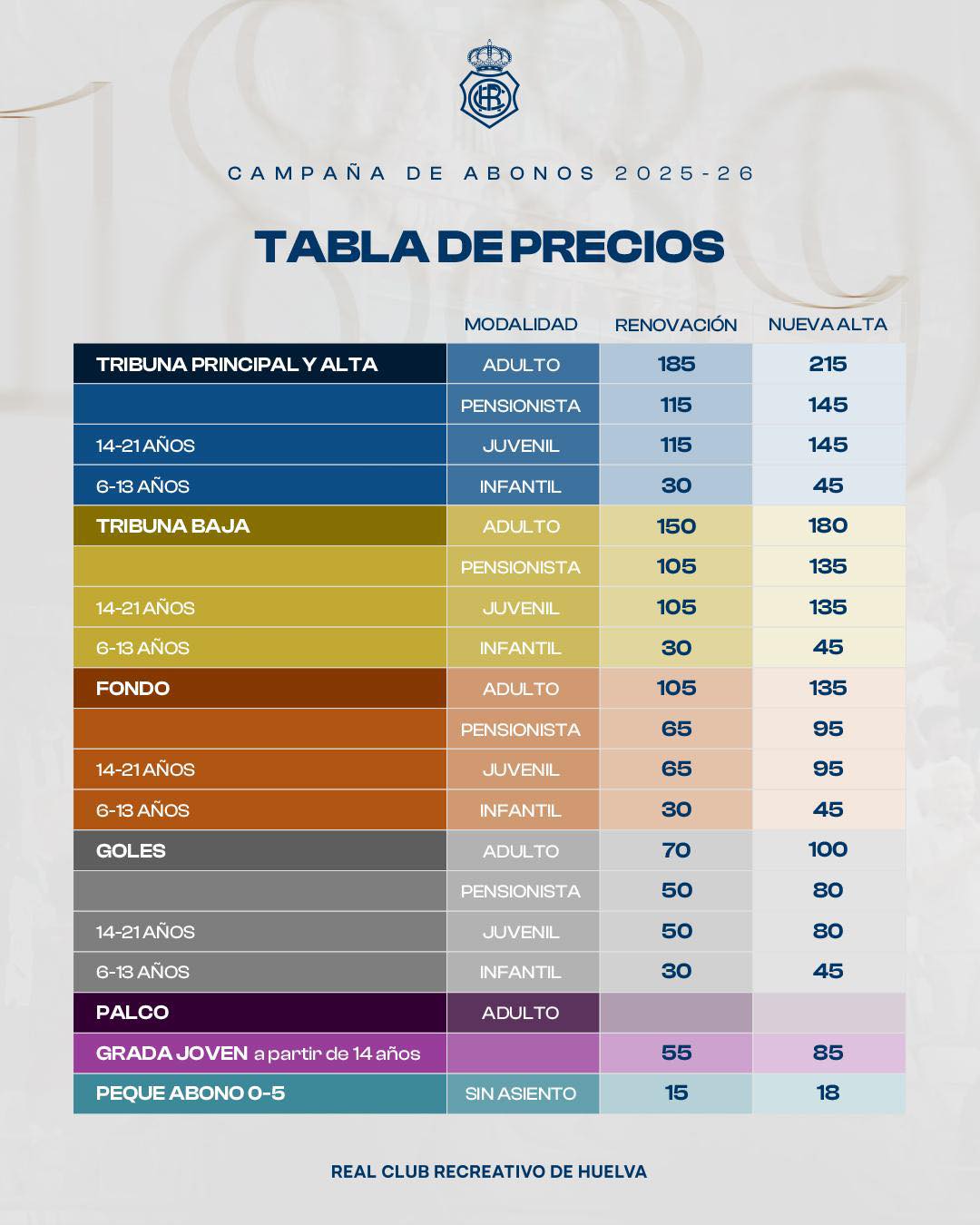 En este sentido se presentó simultáneamente el cartel de la campaña y en el día de ayer se publicaron el listado de precios de los abonos, que son los siguientes: