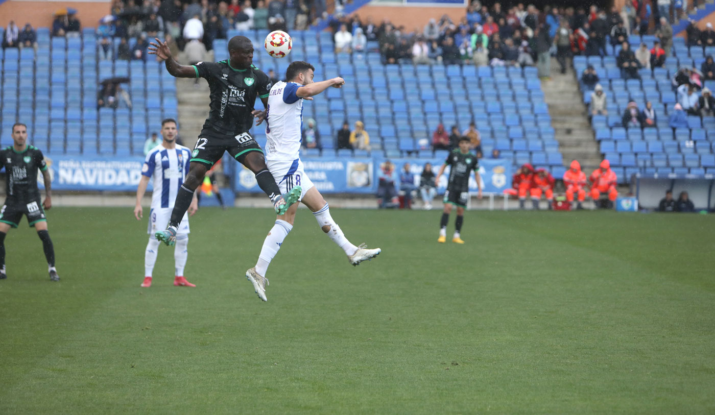 El la segunda mitad el Recre salió algo más apagado y los malagueños tuvieron más acercamientos y peligro, aunque Nico Njalla pudo marcar para el Recreativo en un mano a mano, finalizando el encuentro sin goles.