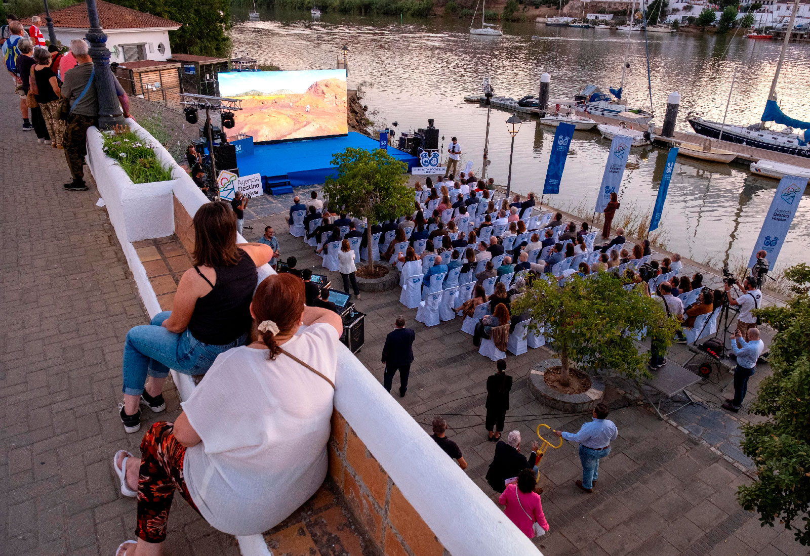 La entrega de galardones ha incluido actuaciones musicales junto al espacio fluvial y fronterizo compartido por Sanlúcar de Guadiana y Alcoutim, localidades que han recibido el premio a la Innovación Turística por la organización del Festival del Contrabando, que rememora los años 50 del siglo XX en la comarca del Andévalo. José María Pérez, alcalde de Sanlúcar de Guadiana, ha recogido la distinción explicando que esta iniciativa “que llega a atraer a 25.000 personas, además de desplegar un puente flotante sobre el río durante esos días, consigue unir y llenar de vida dos orillas hermanas, con actividades y espectáculos que llenan de color y alegría las calles de ambos pueblos y hacen vibrar a un público que disfruta mucho de esta cita cultural”, al tiempo que ha agradecido a la Diputación de Huelva la elección del municipio para celebrar un evento de esta significación.