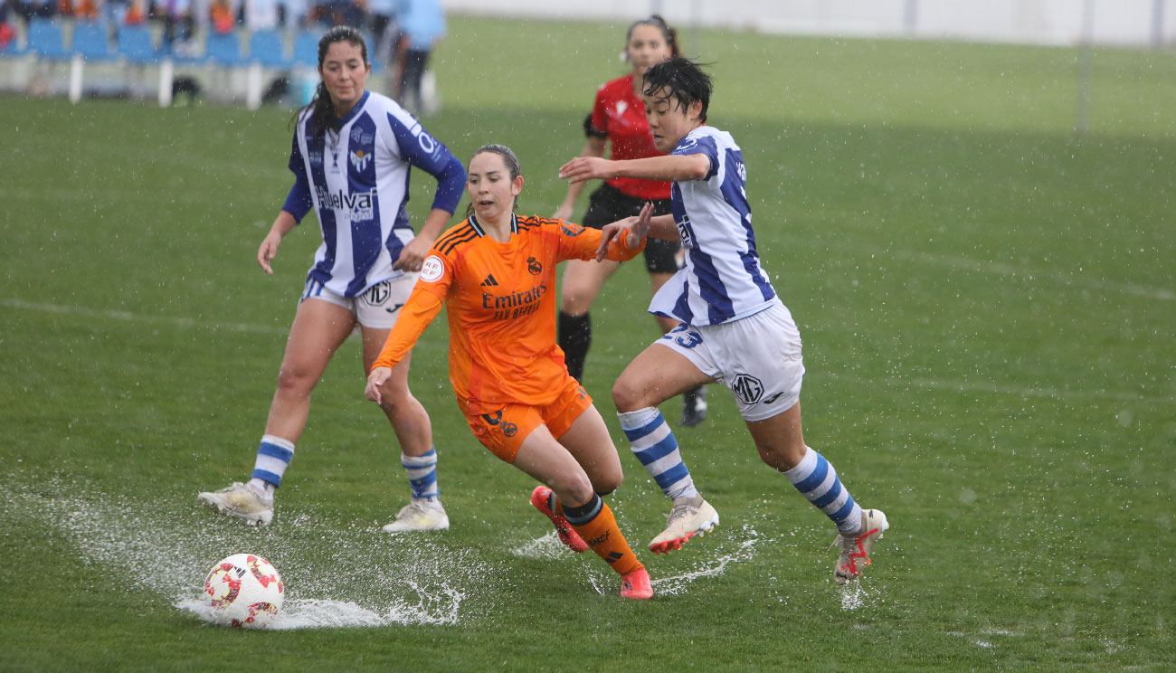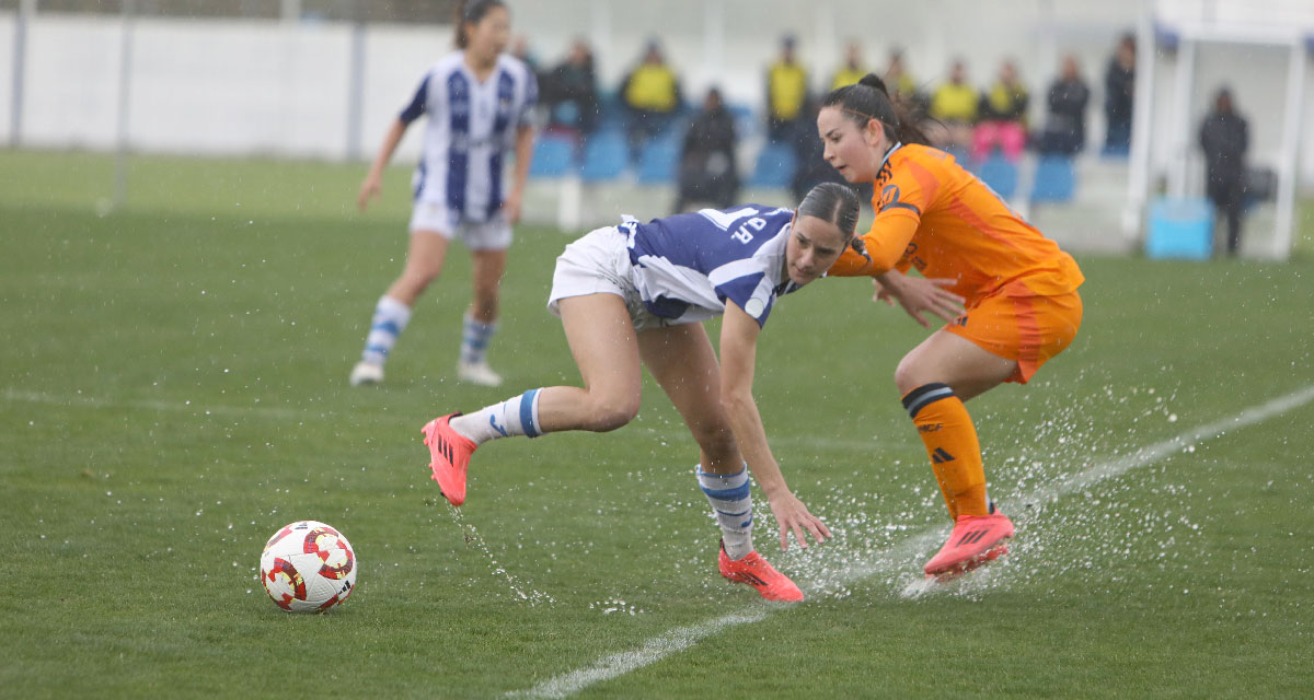 El Sporting recibía hoy al filial madridista. En una primera parte muy igualada y con con el añadido de una fuerte lluvia, cada pugna por el balón fue una complicada empresa. En este periodo Amaya García fue expulsada por doble amonestación, aún así y aunque el Sporting también tuvo acercamientos, fueron las visitantes las que más peligro crearon en la segunda mitad.