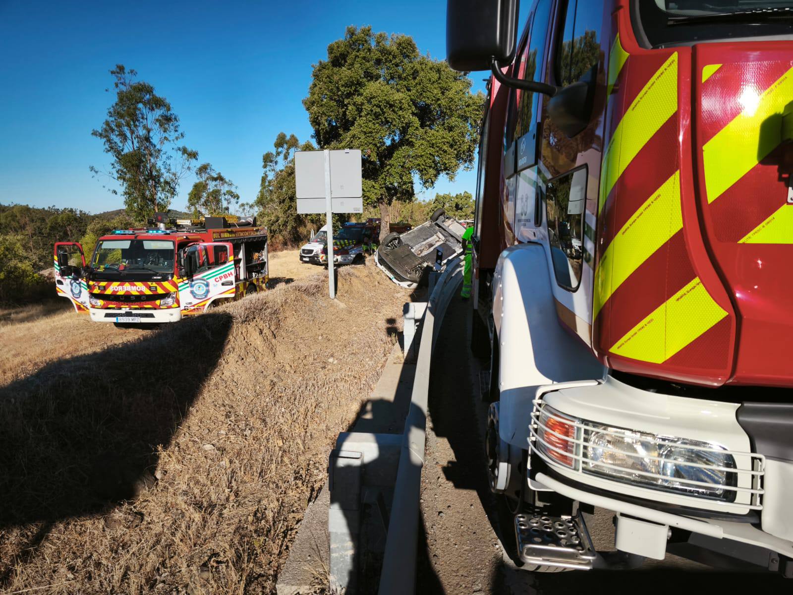 Según se ha comunicado el siniestro ha tenido lugar a primera hora de la mañana entre los kilómetros 150 y 151 de la N-435. El 1-1-2 atendió a las 8:47 horas la primera de varias llamadas que alertaban de la salida de vía y vuelco de un vehículo, en el que indicaban que había una mujer atrapada. De inmediato, la sala coordinadora ha activado al Centro de Emergencias Sanitarias 061, a la Guardia Civil de Tráfico, Bomberos y a mantenimiento de la vía.